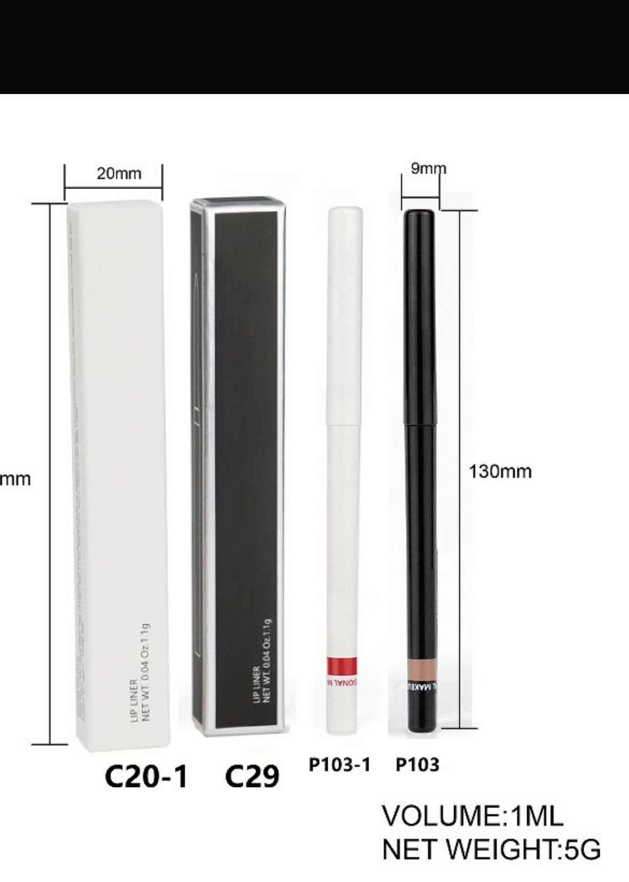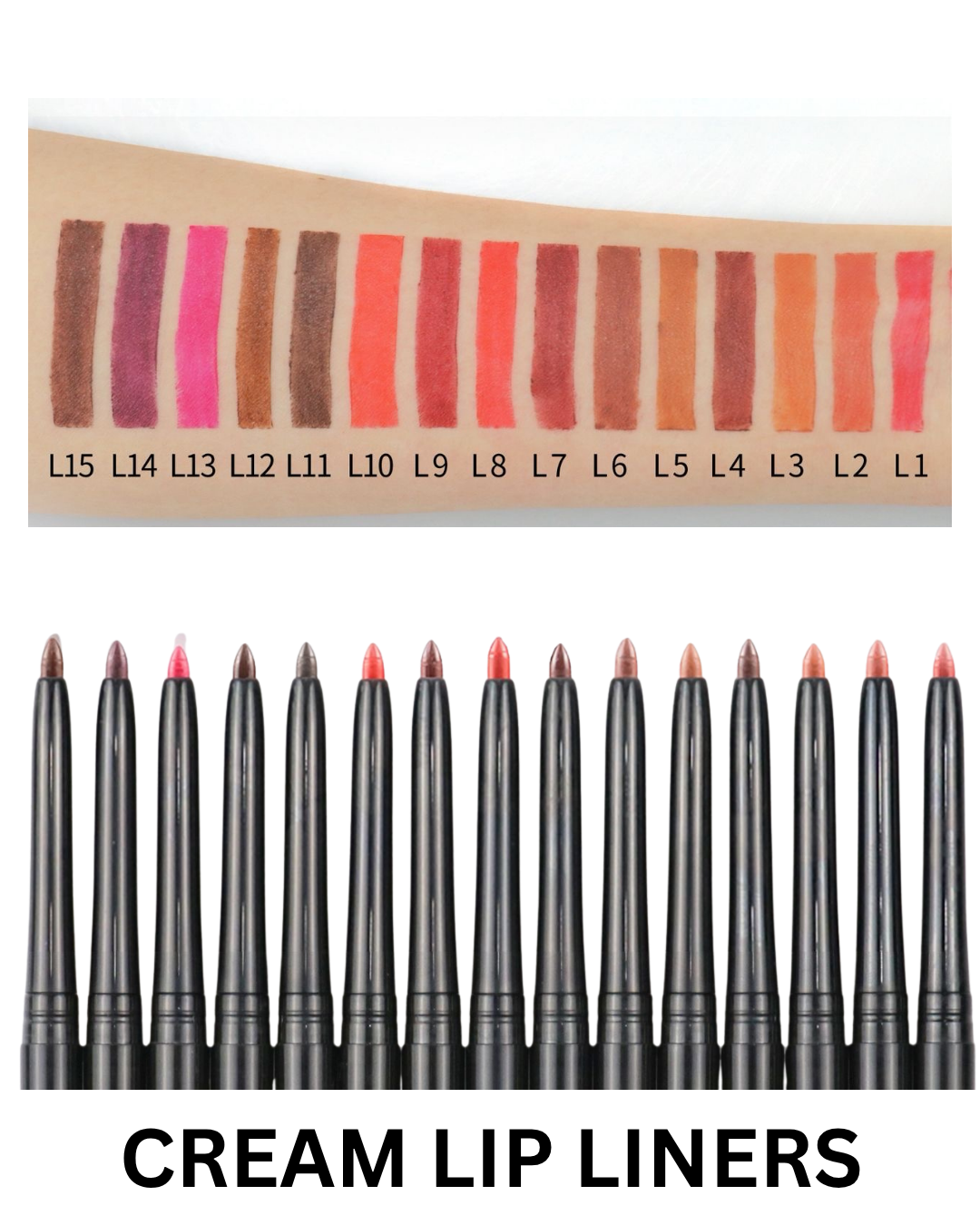Our cream lip liners are high-quality, rich in pigment, and available in black and white barrels.